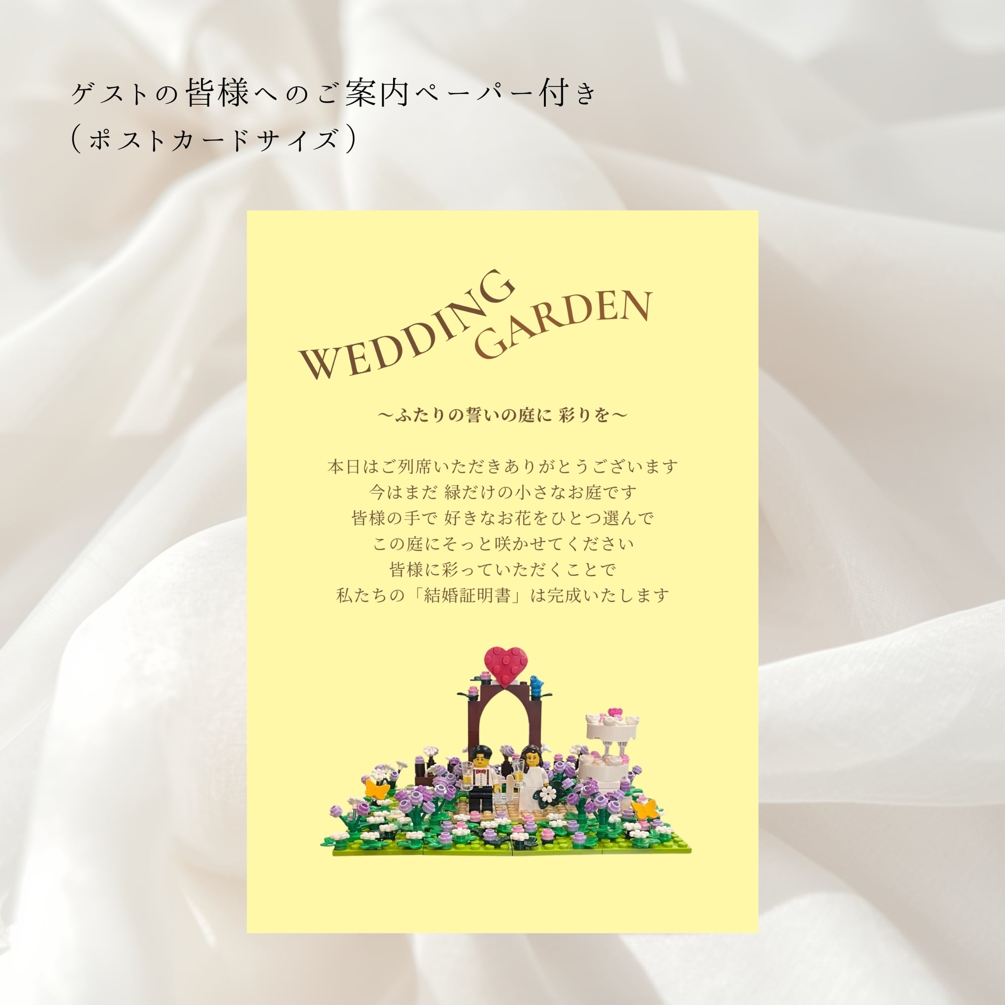 そこにゲストお一人おひとりがお祝いの気持ちを込めて花を挿すことで、世界にたった一つの「結婚証明書」が完成します♪